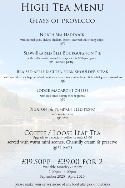 Join us at The Lodge on Loch Lomond for a tasty High Tea with stunning views over the loch. Indulge in a delicious selection of hearty, savoury dishes, perfect for an afternoon escape.