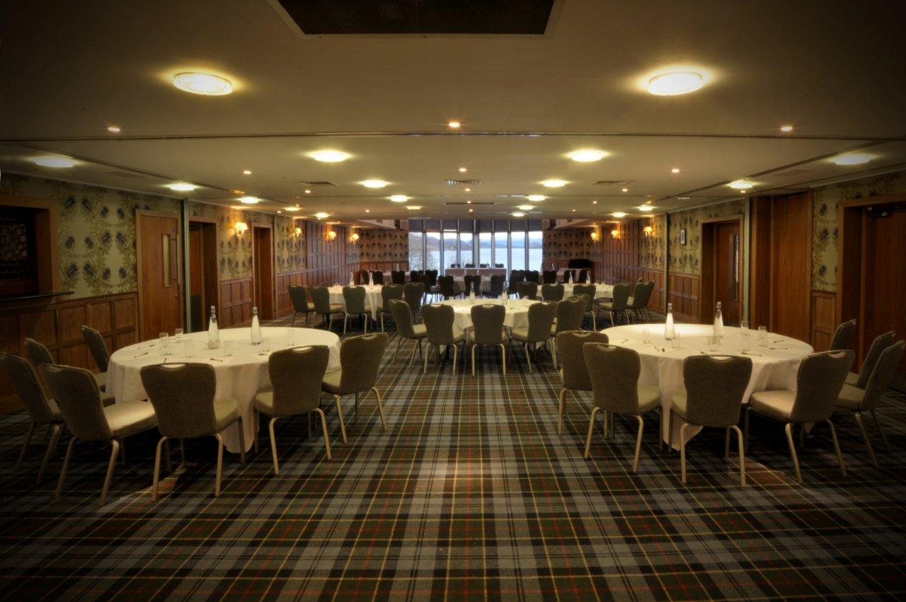 The McMillan suite is our largest meeting room and can be divided into two smaller rooms if required. Located within our Munro building and close to our Glen Lomond Suite which provides further syndicate space. With floor to ceiling windows the room offers stunning views over the loch. It is an ideal Loch Lomond conference and event venue.