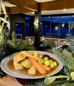 Enjoy your festive lunch in the warmth and welcoming atmosphere of our Restaurant, festive decorations create a lovely ambiance. Our loch side location offers breath taking views that add an extra touch of enchantment to your dining experience.