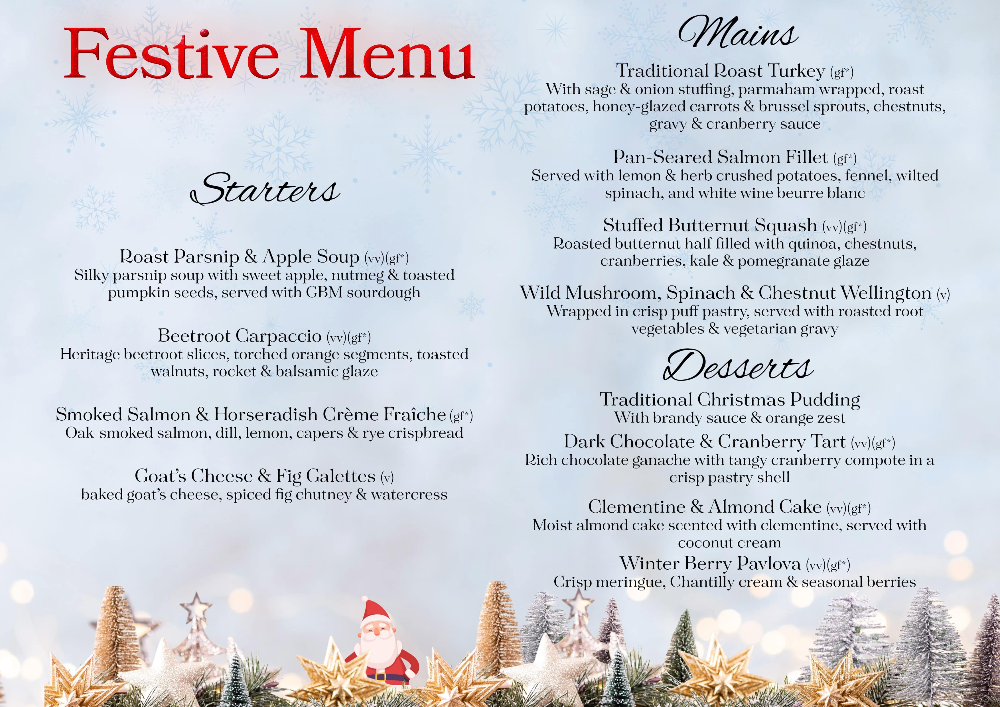 Prepare your taste buds for a culinary delight with our specially crafted festive menu. From mouth watering starters to decadent desserts, our chefs have created a selection of dishes that capture the essence of the season.