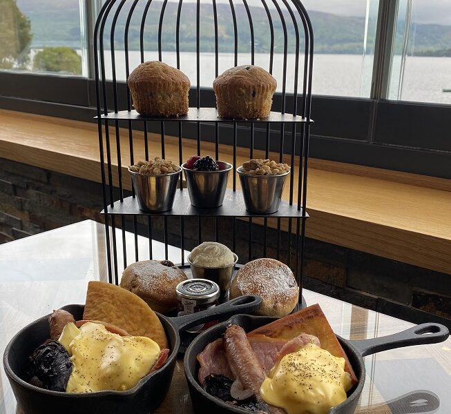 Relax in the comfort of our lounge or restaurant with our quirky take on a Morning tea.  A selection of goodies such as a breakfast skillet of sausage, bacon, tattie scone, poached egg and mushrooms; homemade scones with cream and jam; Chef's sweet treat;  homemade granola with yoghurt and berries – all washed down with your favourite flavoured tea (choice of organic tea: Earl Grey, ginger, green, berry, English breakfast, chamomile or mint) or perhaps coffee is your preference.