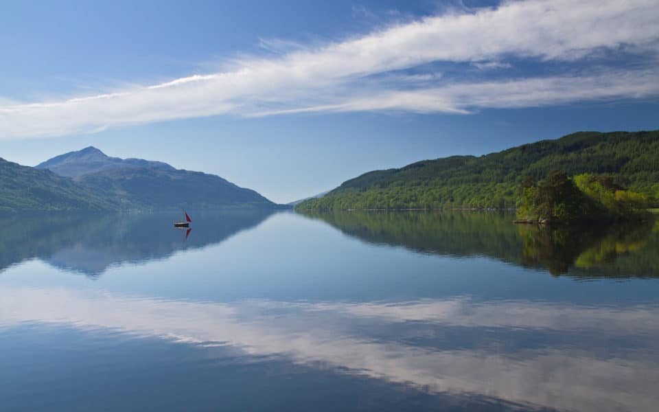 Loch Lomond is a freshwater Scottish loch which crosses the Highland Boundary Fault. It is the largest inland stretch of water in Great Britain by surface area. The loch contains many islands, including Inchmurrin, the largest fresh-water island in the British Isles. More at Wikipedia
