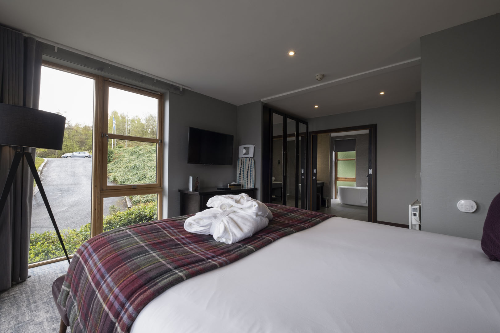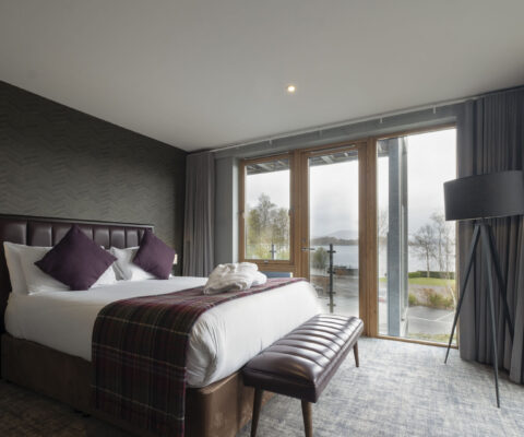 Located in the same Lodge as the Executive Munro rooms,  our Cuillin Suites have been refurbished to a very high standard and also offer a fabulous new layout.  Contemporary in style and offering 2 double bedrooms with a large separate living/lounge space.  The master bedroom now enjoys the wonderful views of the loch and a state of the art bathroom suite complete with freestanding bath, double shower and Hollywood vanity unit and ARRAN Sense of Scotland toiletries included to complete the experience.