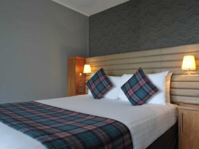 Our Munro ground floor rooms provide modern hotel accommodation with patio doors leading to your car parking spaces directly outside. There are no balconies with these rooms and the view can be slightly obstructed with cars parked close by. The rooms are located in our Munro Lodge which is adjacent to the main hotel building, the rooms are designed in a contemporary Scottish style.