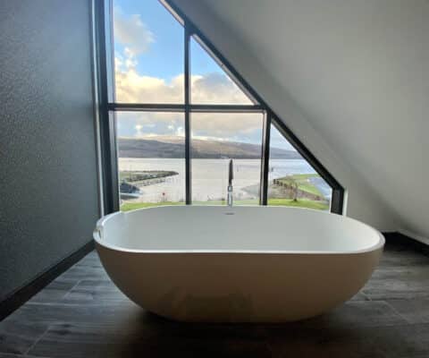 The Beach House is located in a secluded spot at Inverbeg on the banks of Loch Lomond around 3 miles from Lodge on Loch Lomond in Luss, it contains 8 luxury hotel bedrooms which are managed by the team at The Lodge on Loch Lomond Hotel. Spread over two floors, each of the 8 bedrooms are slightly different in design and size however all enjoy the enviable position of being situated directly on the banks of the loch. A very peaceful and relaxing setting!
